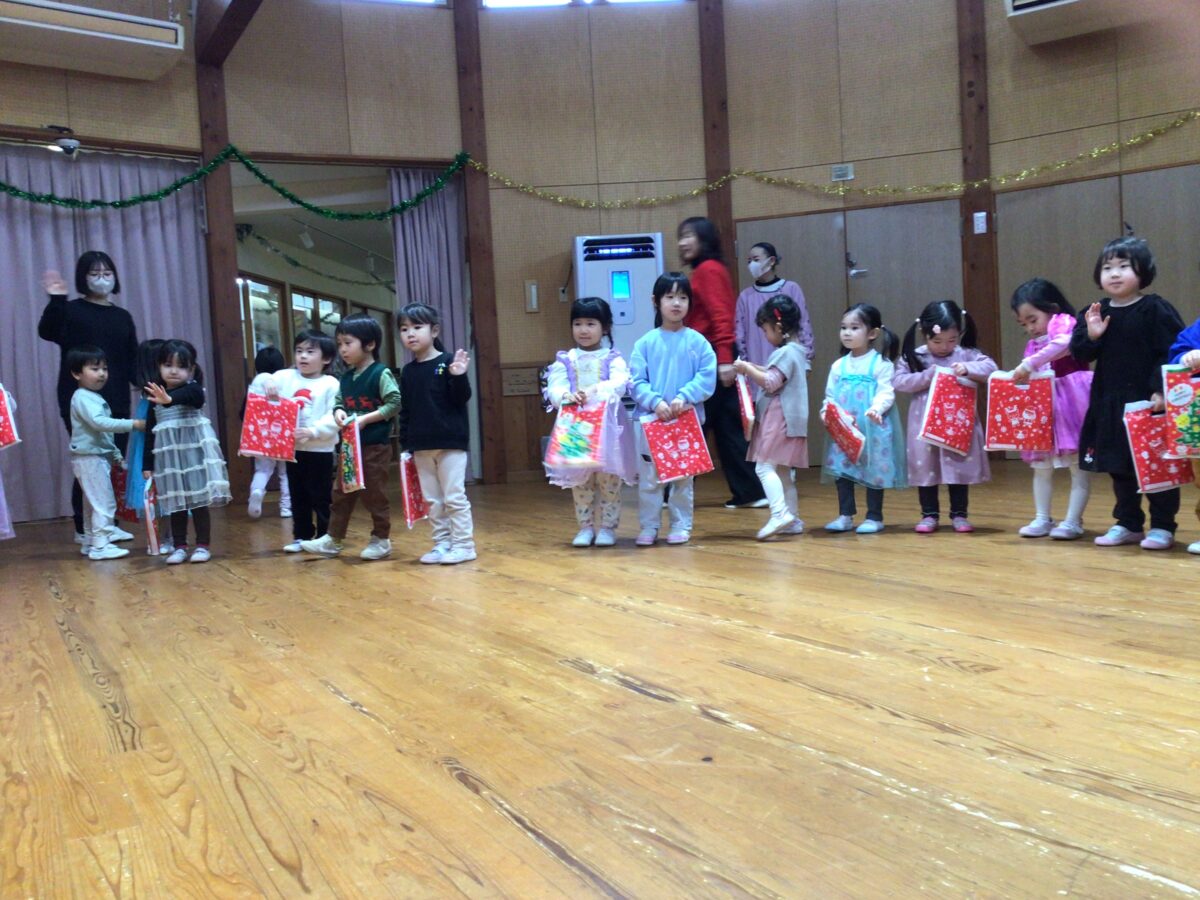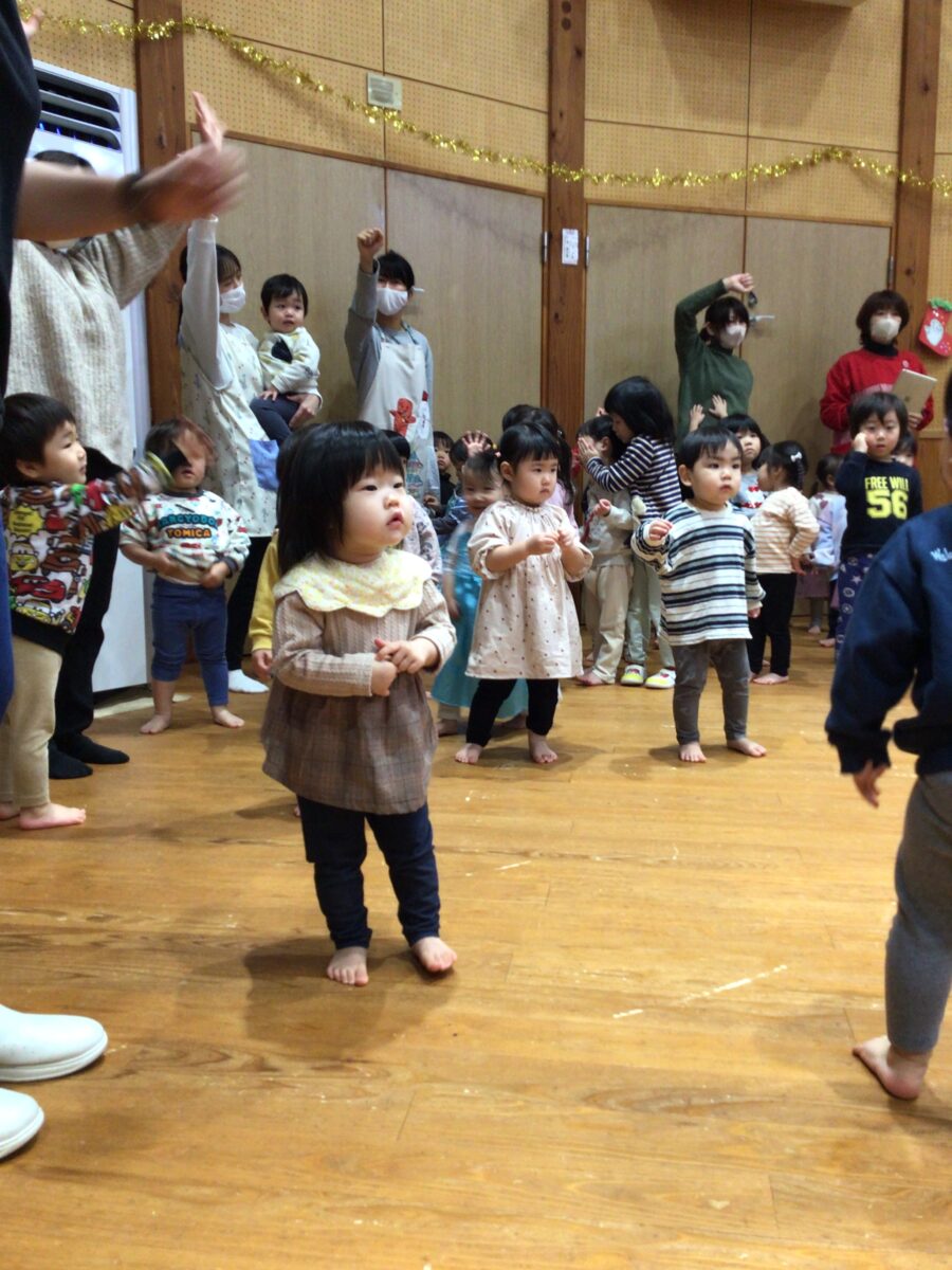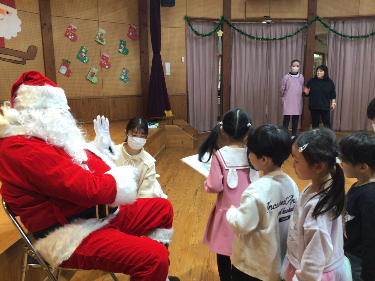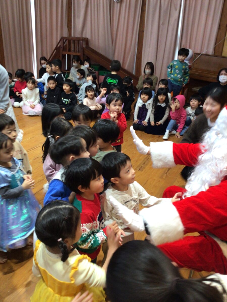 朝から「サンタさん来るかな・・・」とドキドキワクワクしていた子どもたち!サンタさんの姿が見えると「わぁ!!」と目を輝かせていましたよ