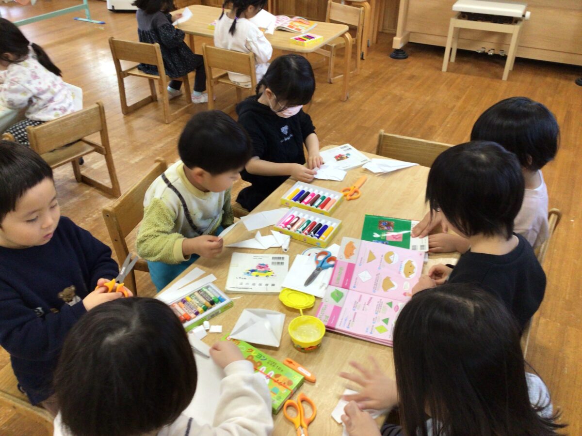 最近のうさぎ組のマイブームは折り紙です‼