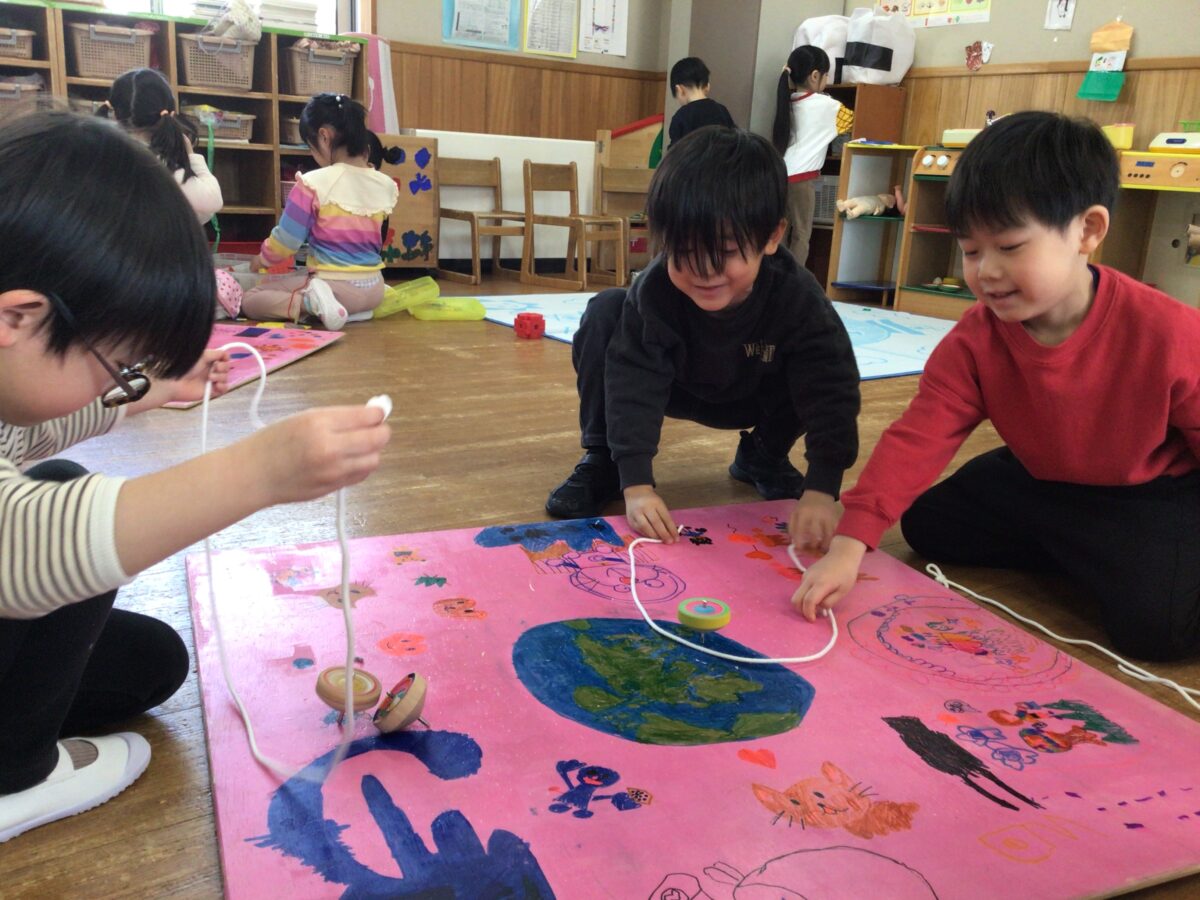 今日はお部屋で好きな遊びを楽しみました!やっぱりコマ回しは大人気♪